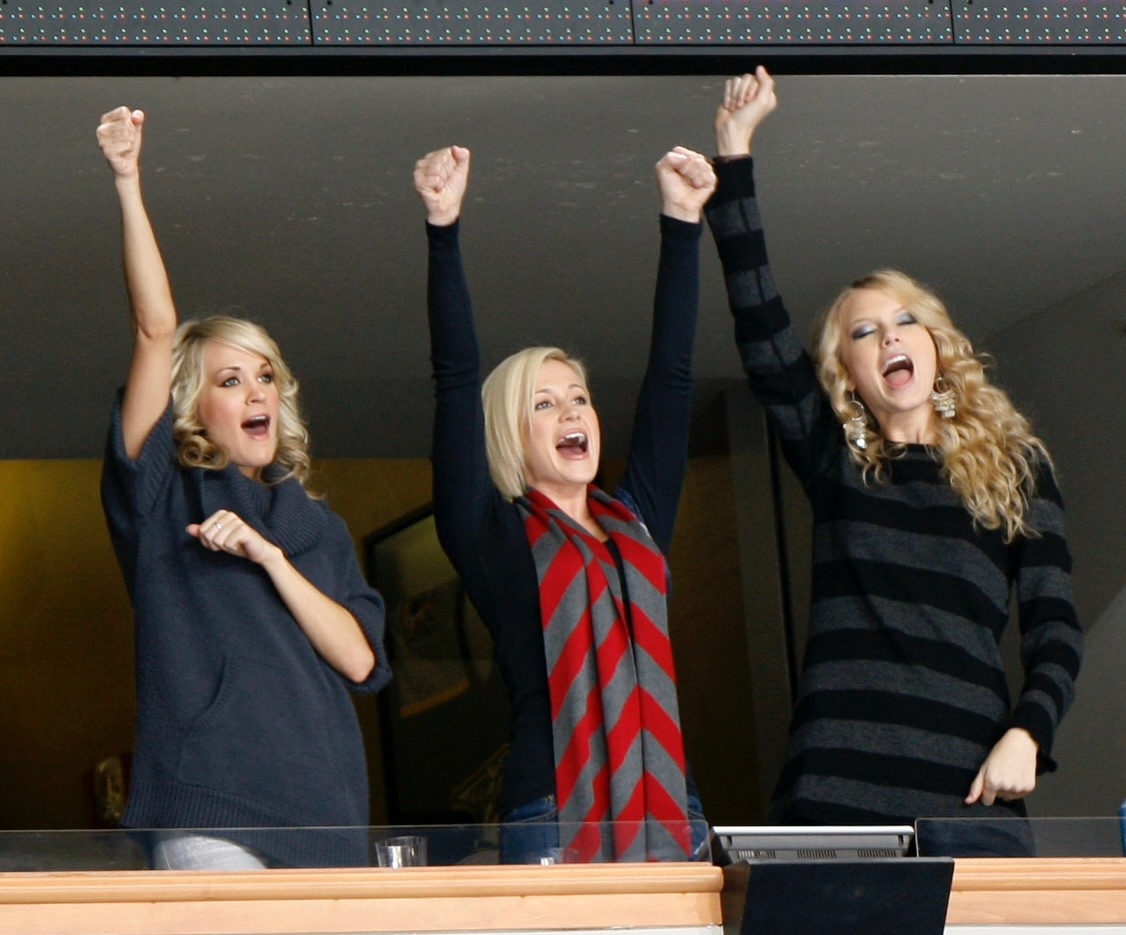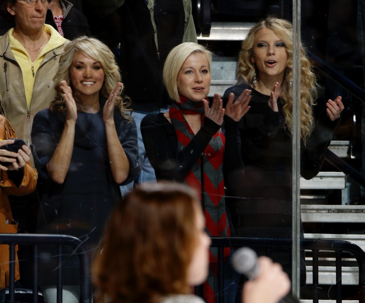 Sexy hot blonde country stars Taylor Swift, Carrie Underwood and Kellie Pickler at Nashville Predators NHL hockey game in December 2007. Wow how time flies. Taylor and Carrie are not sex icons and global superstars. Kellie is such a stunning talent and beautiful soul 🙂 What a fun day!