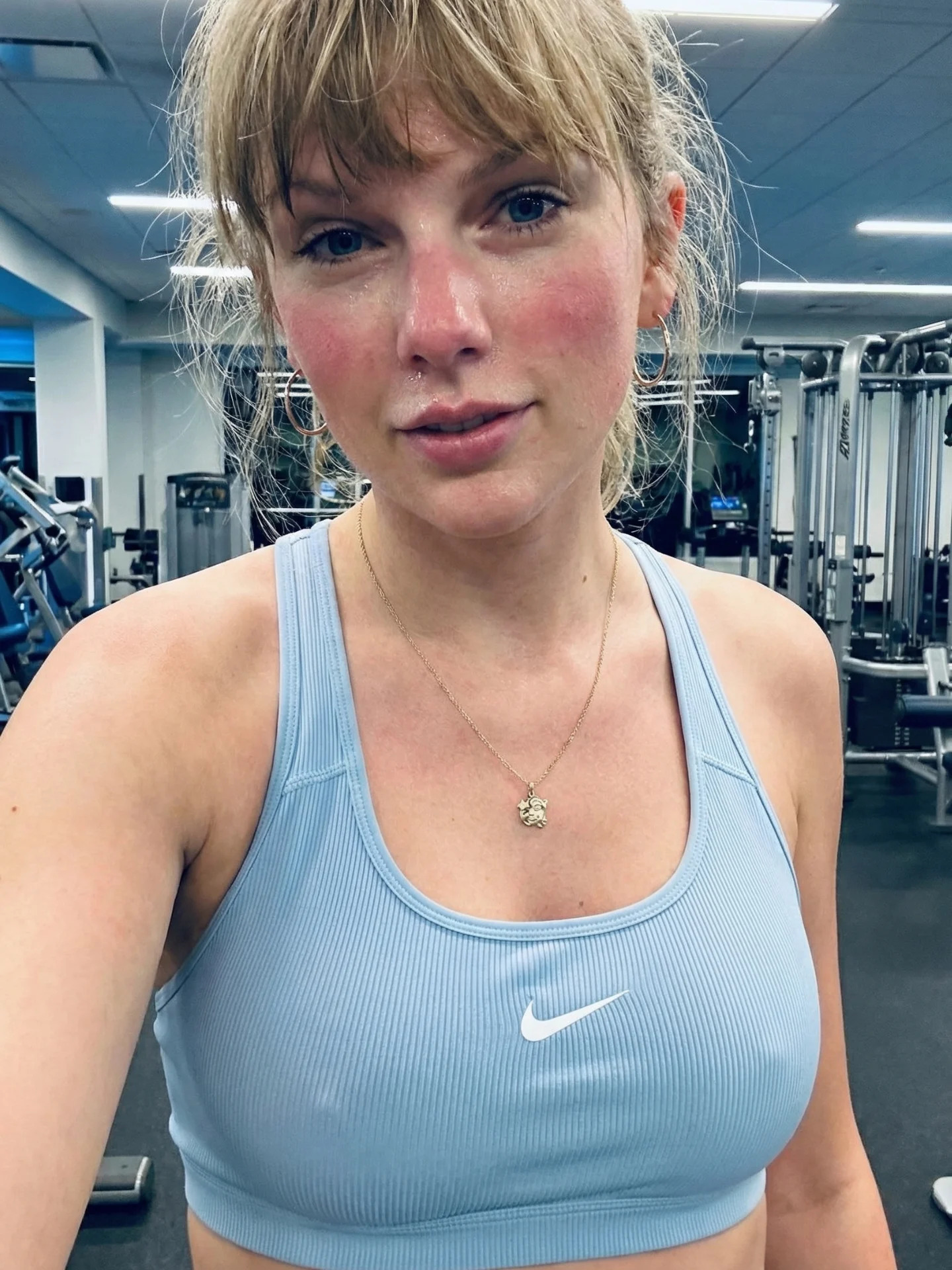 Gorgeous sweaty Taylor Swift VERY sexy workout selfies in the gym. Her boobs and hard nipples look fabulous π Taylor even giving all you celebrity feet addicts a little peek! Who wants more? Taylor Swift is so so damn hot. The most incredible body ever. Ugh!