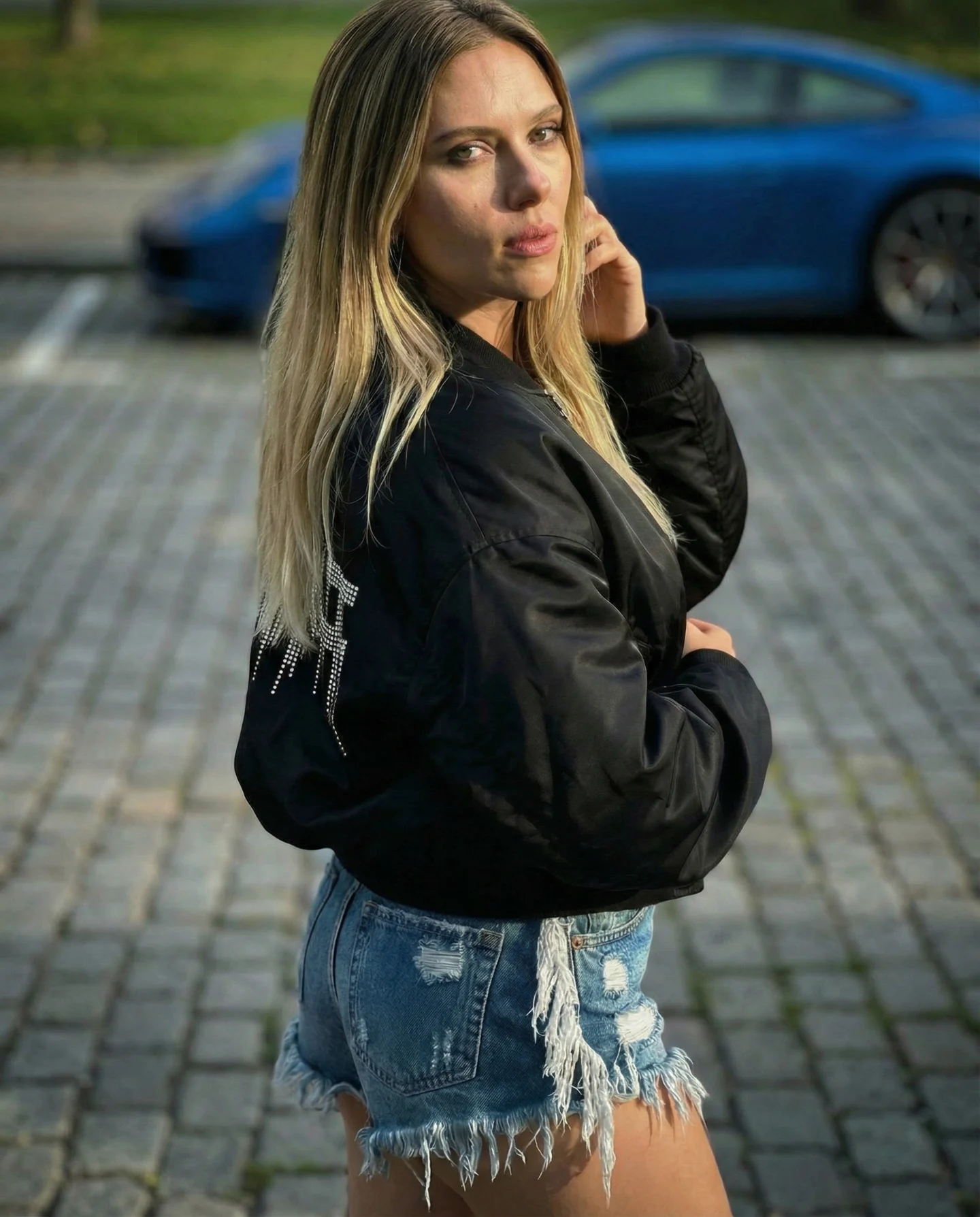 Super sexy Scarlett Johansson proudly flaunting her fantastic juicy round ass in daisy dukes jean shorts 😛
